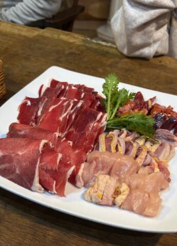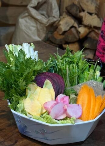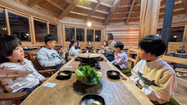 夕飯は、美山で捕れた鹿肉や猪肉、鶏肉に、お野菜でのすき焼き!
