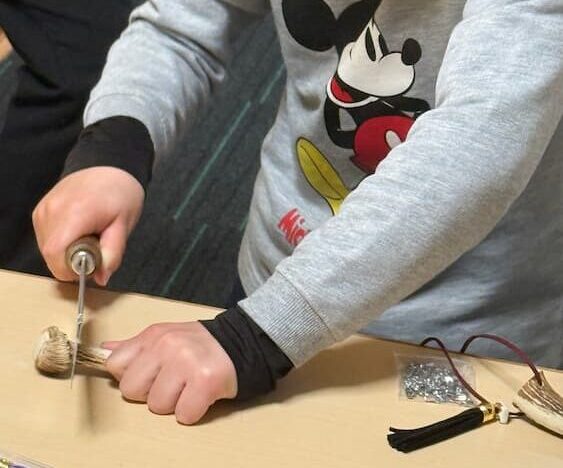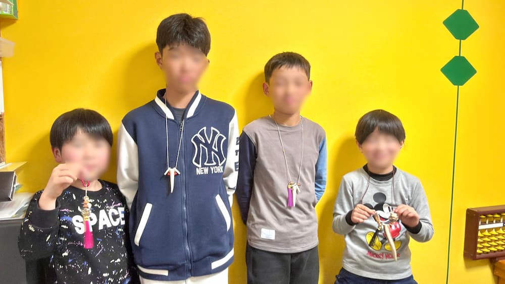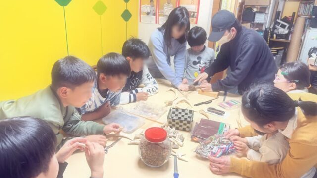 FIT Craft ~鹿の角でアクセサリ作り~ 先週は、ウインターツアーの続きの企画として、FIT Craft を開催。鹿の角を使ってアクセサリー作り。ウインターツアーに参加した生徒さんも、参加していなかった生徒さんも、外部のお友だちもたくさん参加してくれました。鹿の角のどの部分をどう使うか、ワンポイントにどんなチャームを使うのか、いろいろ見ながら考えを膨らませてくれていました。 そろばんの珠も色味の違うもの(材質の違うもの)を4種類ほど用意しておきました。 もちろん、切るためののこぎりや、やすり、磨き上げるために番手違いのサンドペーパーも。 道具の使い方の説明もしっかり聞いてくれ、各々のイメージで創作してくれました。 鹿の角を切ったり、穴をあけたり、磨いたりする際には独特な臭いがする。 どこかで嗅いだことのあるにおいと一緒だよね~素材が同じなんだから・・・その臭いに鼻をまげて臭がっちゃう子「えっ~、何にも臭わないよ~。」 なんて言う子反応は様々でおもしろい^^ お友だちとお揃いになるように、ちょっと厚めの存在感のあるストラップを作った、AちゃんとHちゃん。好みも色違いになっていていい感じ!!大日校のKちゃんは、太めの角の薄く切ってから、真ん中をくり抜いて、そろばんの珠を入れてデザイン。 かっこよくできた! 😀 みんな、それぞれに組み合わせて自分だけのものを完成させてくれた。 黄色が好きなMちゃんは、いろいろ付けて「これはちょっと違う、、、 こっちも付けてみる。 こっち側がいいかな~、やっぱりこれは要らない」と頑張りながら、最後には腰に付けてみて、「けっこう似合ってるやん!」と自画自賛。いい笑顔を見せてくれました。 前の塾長ブログ