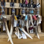 鹿の角をサウンドペーパーで磨き、様々なパーツや、そろばんの珠などを使って自由な発想で自分だけのキーホルダーやアクセサリーを作ってみましょう。